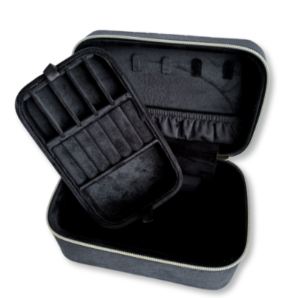 Endelig kan du kjøpe et smykkeskrin til smykkene dine! Du kan velge mellom en stor eller en liten, og begge passer perfekt til å oppbevare smykkene dine på reise, eller hjemme.