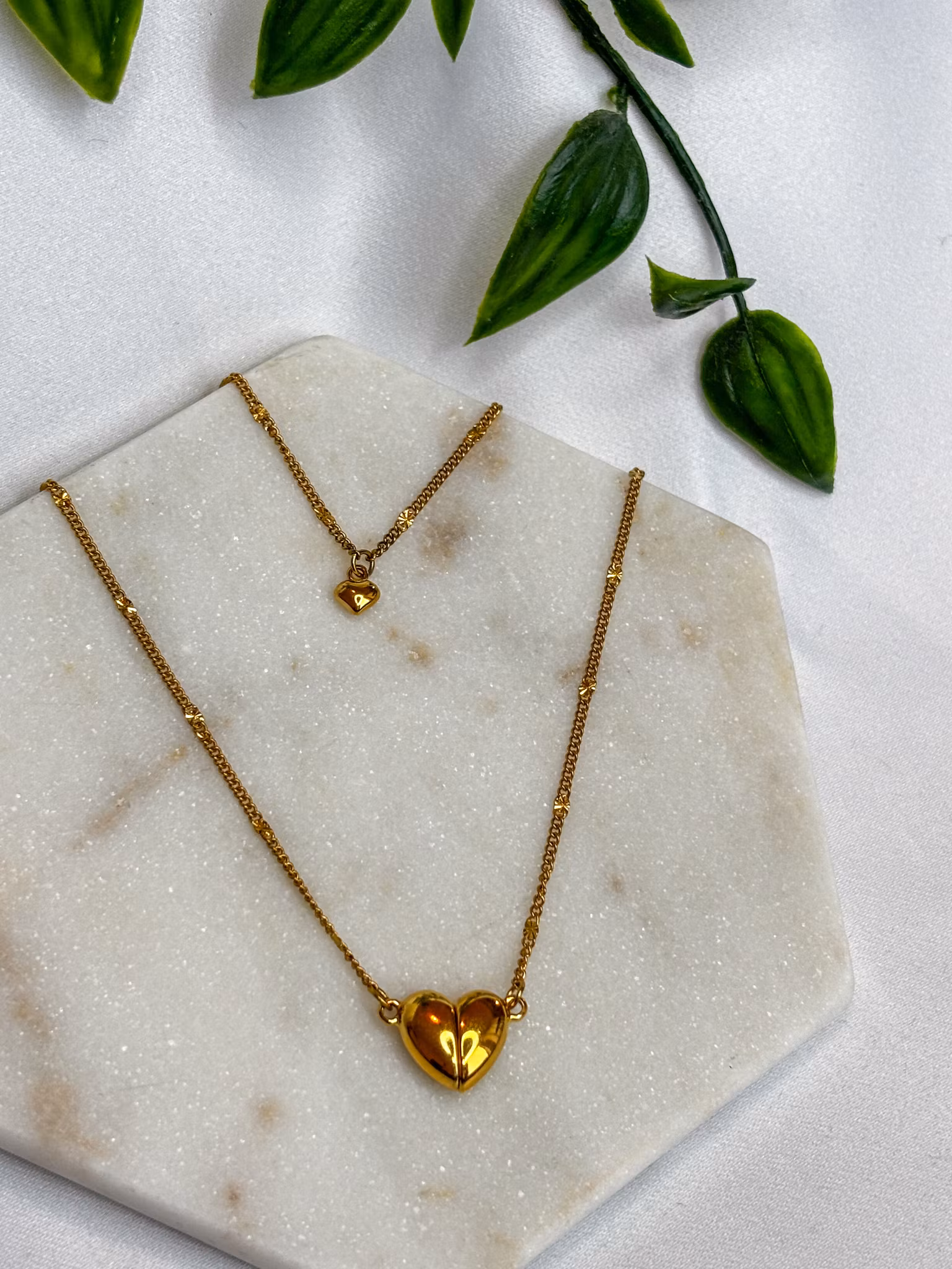 ALL YOURS smykke er er gullbelagt smykke pyntet med et hjerte. Hjertet er en magnet, som fungerer som låsen på smykket.