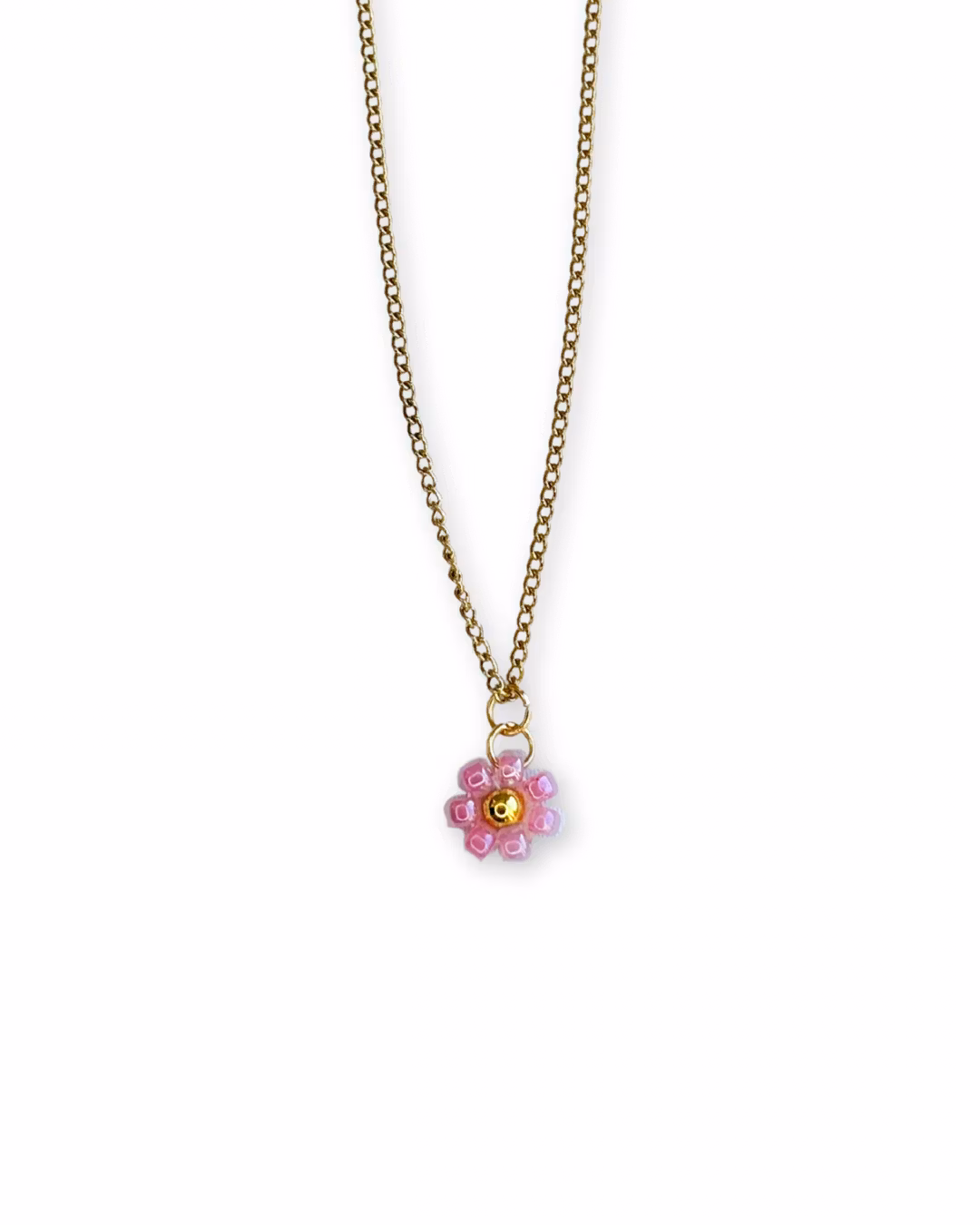 Lett, delikat og tidløs – dette smykket i gull med en håndlaget perleblomst gir et feminint og stilrent uttrykk. Perfekt for deg som ønsker et subtilt, men unikt tilbehør som passer til både hverdag og spesielle anledninger. Finnes i fem forskjellige farger; hvit, lilla, rosa, blå og brun.